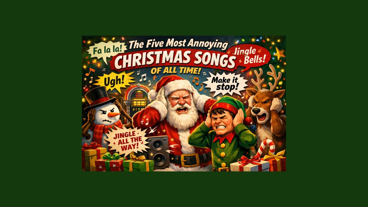 Below is a list of the top five most annoying or least favorite Christmas songs according to various publications, surveys, and listener polls. These songs often appear on year-end lists of seasonal music that people hate.