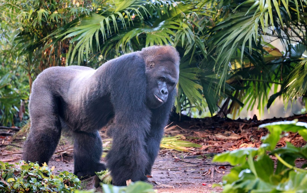 Gino, the patriarch of the western lowland gorilla troop at Gorilla Falls Exploration Trail, forages in the habitat at Disney’s Animal Kingdom, in Bay Lake, Fla., Sept. 23, 2019. Disney announced Wednesday that Gino has died. At 44, he was the oldest gorilla at the Walt Disney World park and had resided at Animal Kingdom since its opening in 1998. (Joe Burbank/Orlando Sentinel)