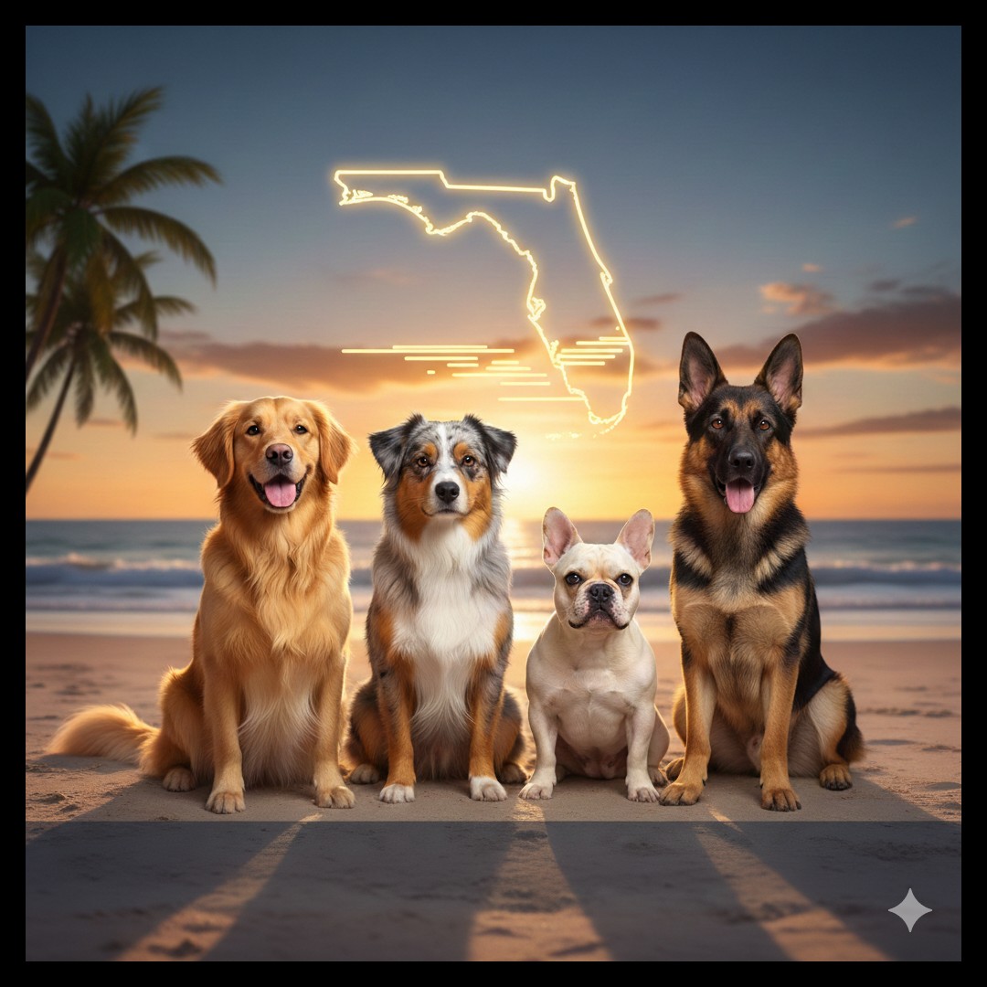 The most popular dog breeds in the state are the Golden Retriever, with an average monthly search of 83,569 searches, the French Bulldog with 58,377 searches, and the Australian Shepherd with 53,844 searches. Next is the German Shepherd with 50,008 cases, followed by the Belgian Malinois with 47,473 cases.