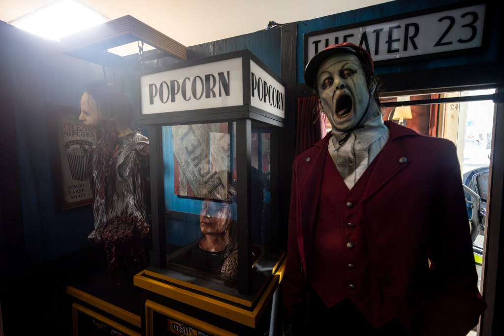 The home’s haunting experience in Windermere takes place in two garages transformed into an abandoned cinema. Experience “Silver Scream – Cursed.” Animatronics lurches with guests walking through the scene from theatre to theatre.