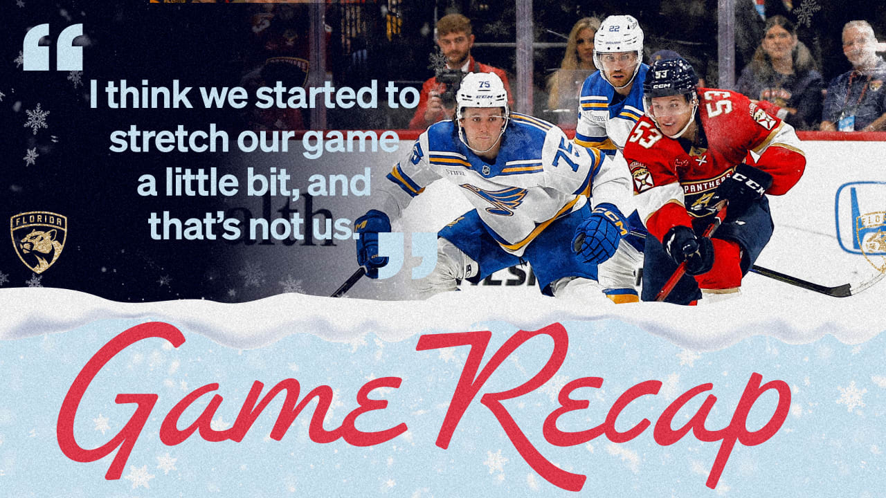 The Panthers drew Tarasov on the power play for a 6-4 advantage, but Thomas fired the puck into an empty net for a short goal at 16:28, giving the Blues a 6-2 lead.