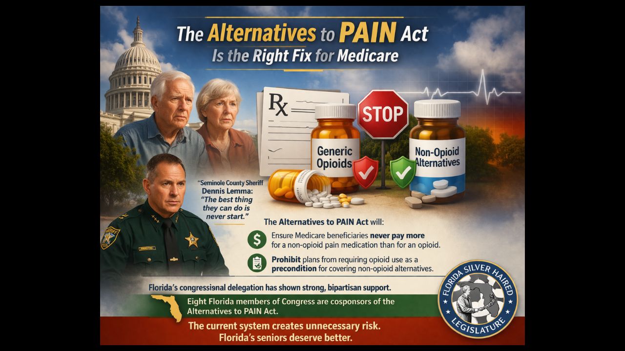 The Florida Silver Hair Council exists to ensure the voices of older Floridians are heard where decisions are made. What we need to do here is to speak up when we see policies that put seniors at unnecessary risk. The way Medicare currently handles painkillers is one such policy, and last week’s hearing in the House Energy and Commerce Committee focused on a bill that would provide an opportunity to fix it. At that hearing, our Seminole County Sheriff Dennis Lemma expressed the seriousness of the opioid epidemic by saying, “The best thing they can do is never start.”