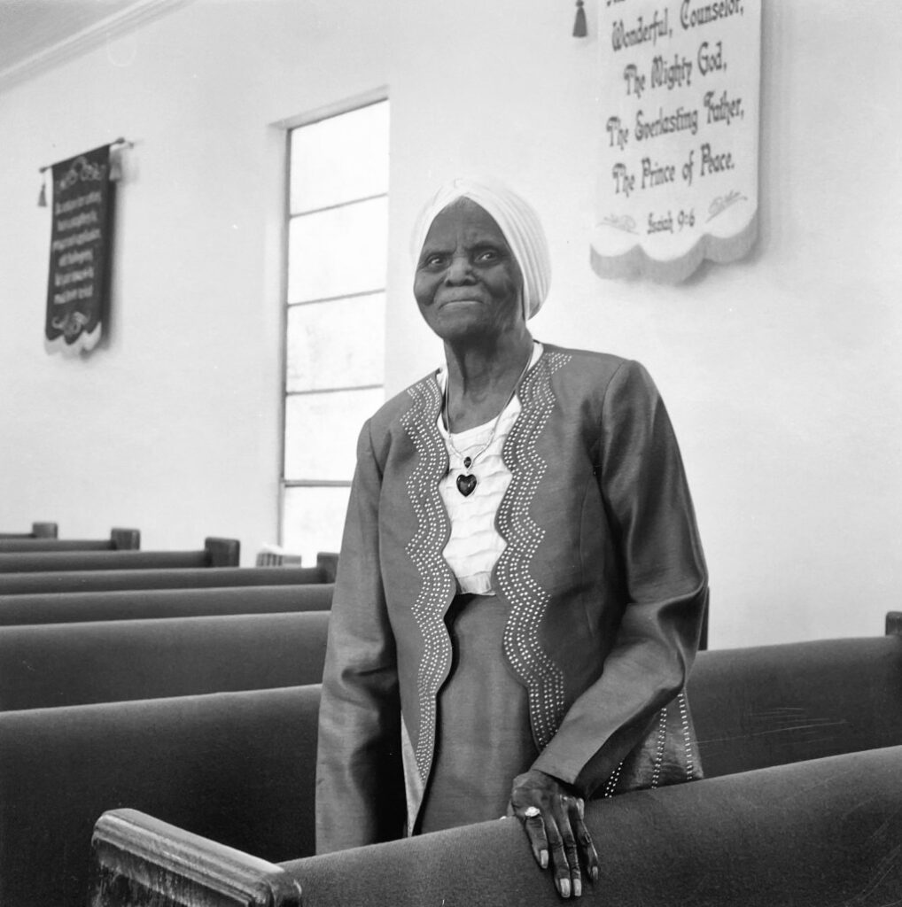 “Sage Project Phase III: The Elders of Hannibal Square Tell Their Story” features 10 new portraits of longtime community residents, including Fairline Livingston on the front porch. These are on display at Hannibal Square Heritage Centre. (Courtesy Peter Schleier)