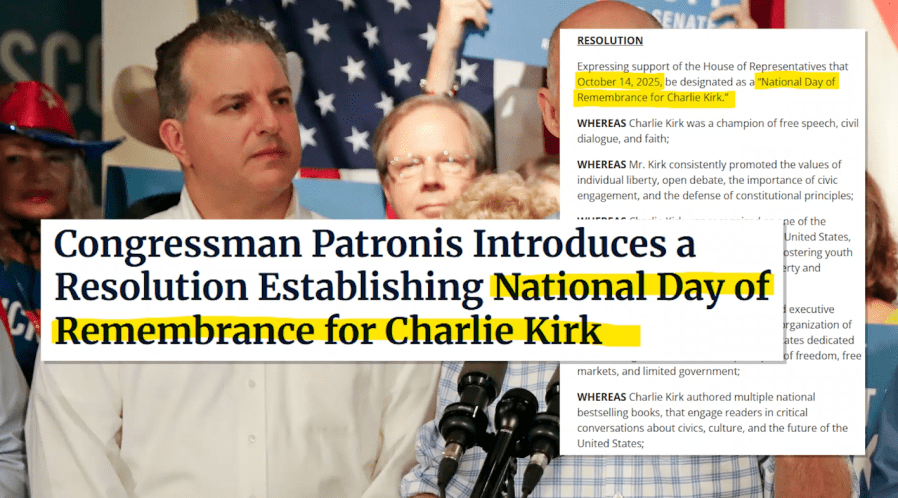 Rep. Patronis worked with U.S. Senator Rick Scott on October 14, 2025, introducing Kirks’ Day of Memories on his birthday.