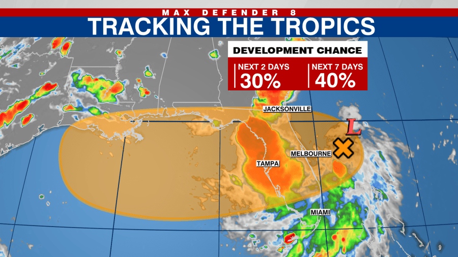 TAMPA, Fla. (WFLA) — A low-pressure area offshore on the Atlantic coast of northern Florida is causing rain and thunderstorms to parts of Florida, the National Hurricane Center said.