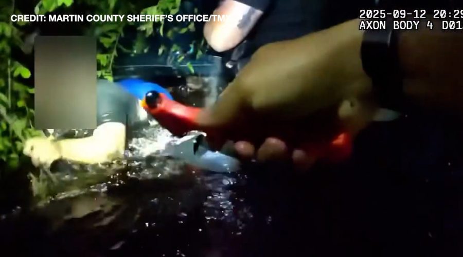 A body camera video released by the Martin County Sheriff’s Office shows officers identified as deputies for Matt Fletchy and Juan Pepper Aureliana, running through water and thick leaves to help the trapped husband and wife escape.