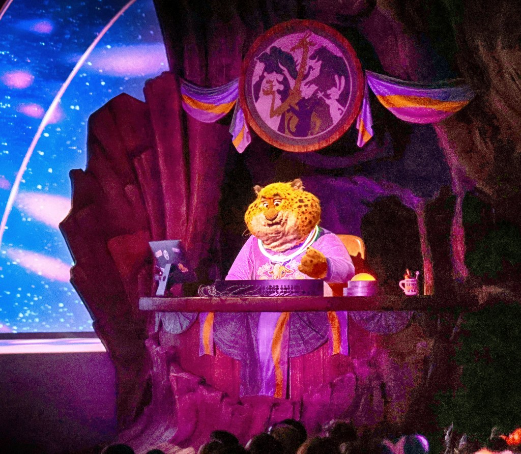In the attraction’s storyline, Clawhauser takes time off from the ZPD to attend a concert of singing gazelles as part of the Zoo Day celebration.